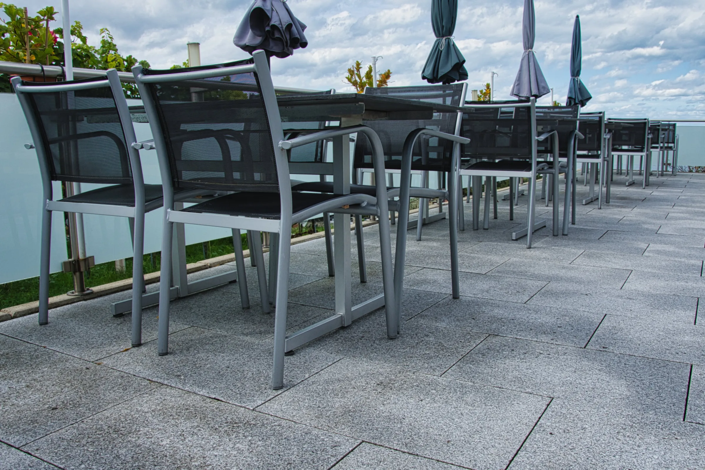 Our TREWA T4 outdoor tables - Rectangular tube with horizontally positioned feet